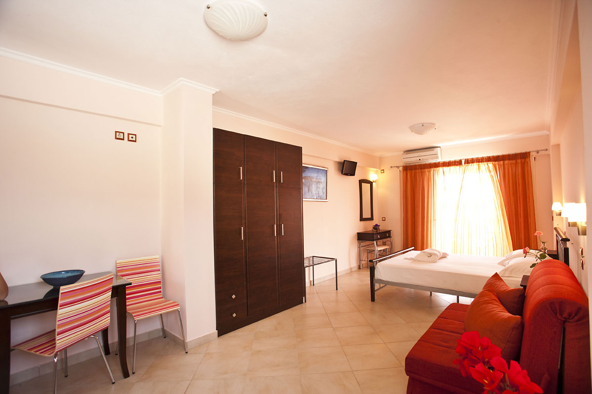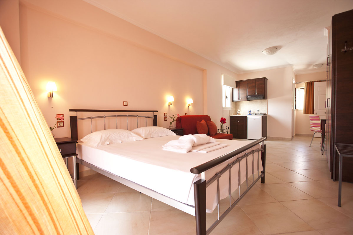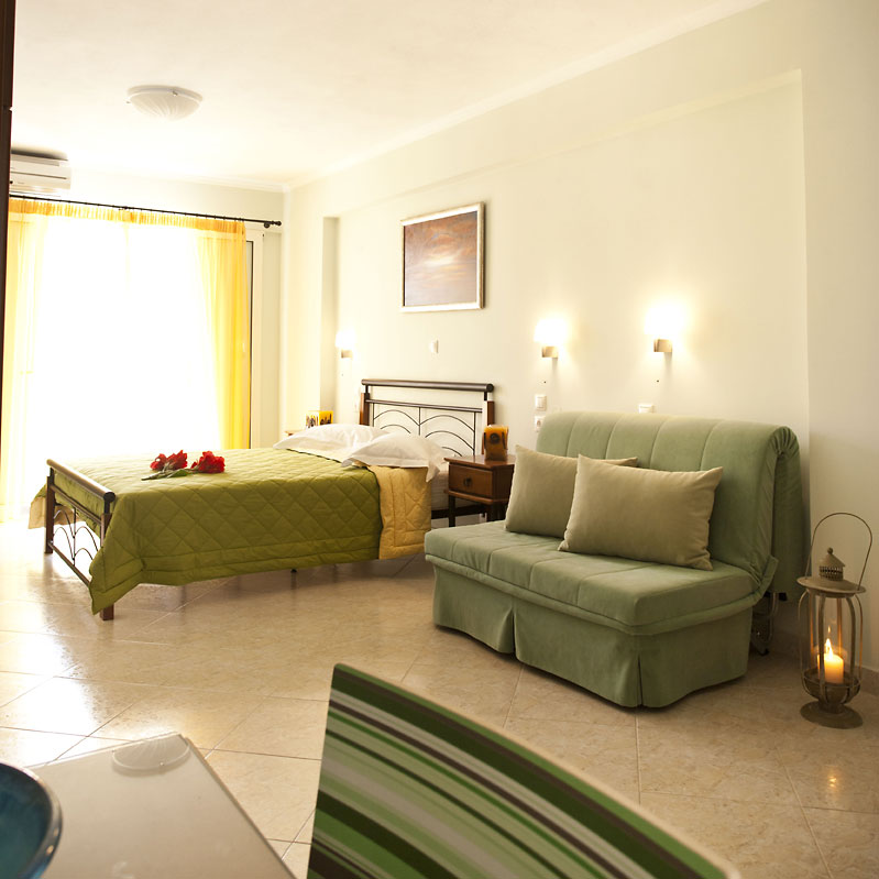 Rooms 27 - 30 m2 with kitchen, double bed or 2 single beds and an extra sofa-bed for 1-2 people.